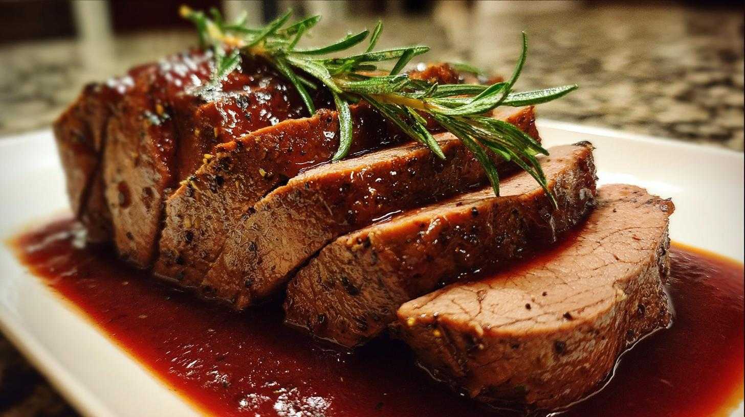 Indulge in an Elegant Beef Tenderloin Roast with Red Wine Sauce