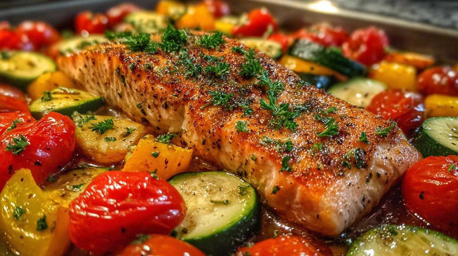 A simple and delicious one-pan salmon dinner perfect for summer, featuring fresh seasonal ingredients and easy cooking instructions.